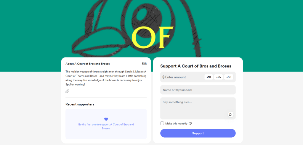 I’ve gotten a lot of questions on how long we’re going to do this. Truthfully, I don’t know. Patrick, Joe, and I have committed to finishing Book 3, which we’ve been told is the end of the Feyre/Rhys trilogy. I don’t know If we’ll continue to books 4 and 5, but we will reassess when the time comes. If not, I’ve got something else brewing.